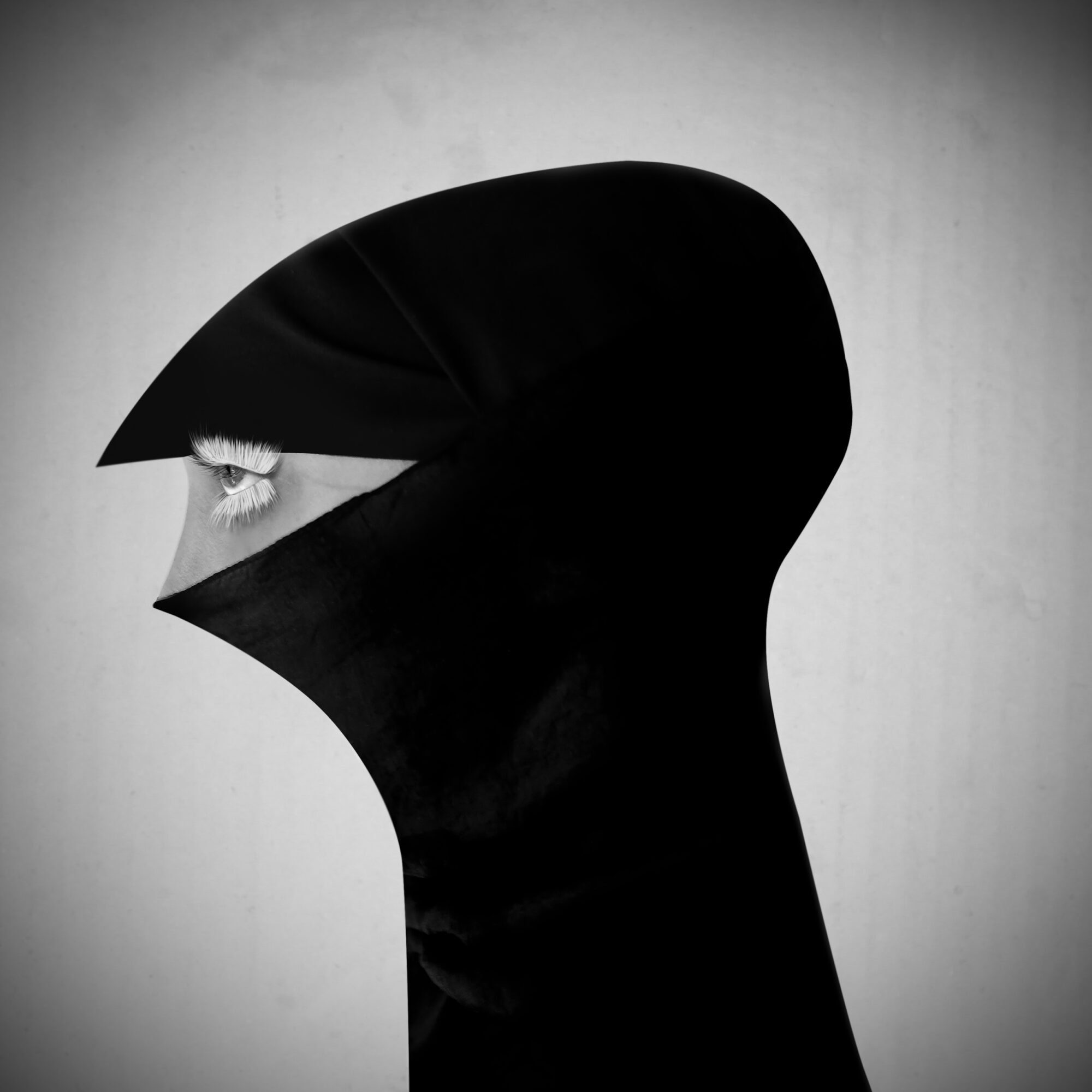 Der Tschador verhüllt hier in Form eines Vogels, der Gutes oder Schlechtes ankündigt, einen Mann. Die schwarzen Vögel hinterfragen das, was zu sehen ist – aber auch das, was verhüllt wird.