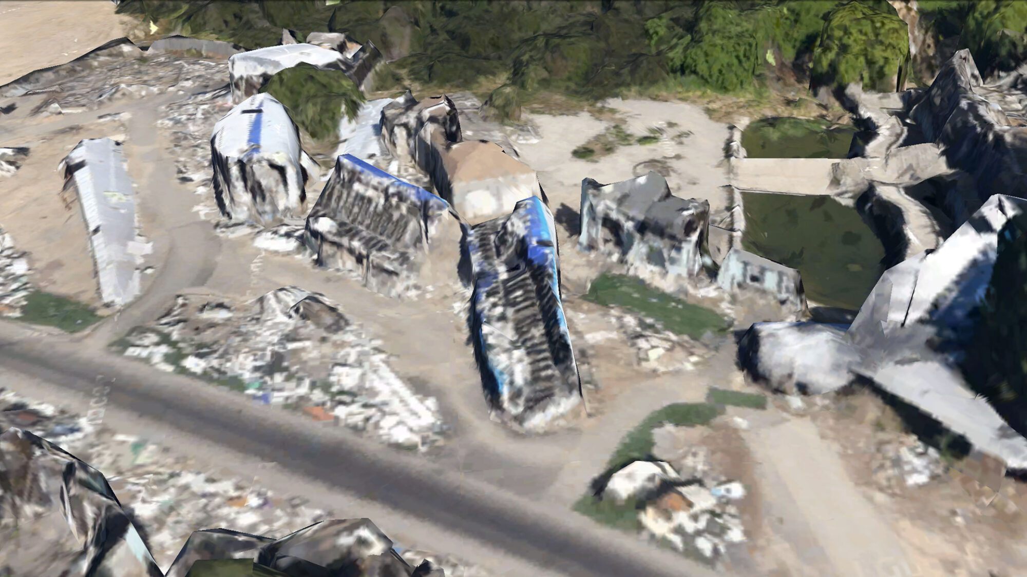 34°8’8.59”N | 118°20’48.61”O is a long take video made using Google Earth. The place depicted is the set built at Universal Studios in Los Angeles for Steven Spielberg’s 2005 film “War of the Worlds.” By making a long take of this location, I am trying to induce a feeling of confusion in the viewer.