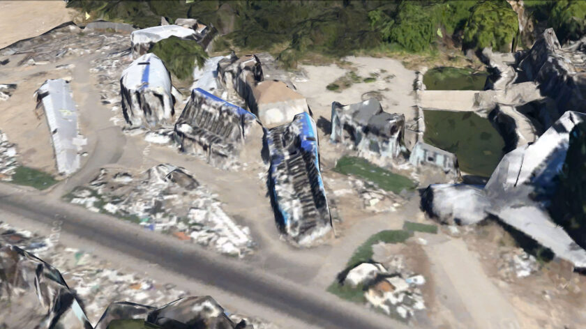 The architectural shots in Livia Di Giovanna’s video “Doppelt und dreifach umrundet” present us with a certain kind of industrial scene, but once they are laid flat, the images are transformed into sculptures with the third dimension left out. Alongside the video is a carousel made of wood, glass, and mirrors which reflects and deconstructs its surroundings. The installation thus employs movement, the position of the viewer, and “the gaze that becomes the motor in this machine for distilling images.[1]”