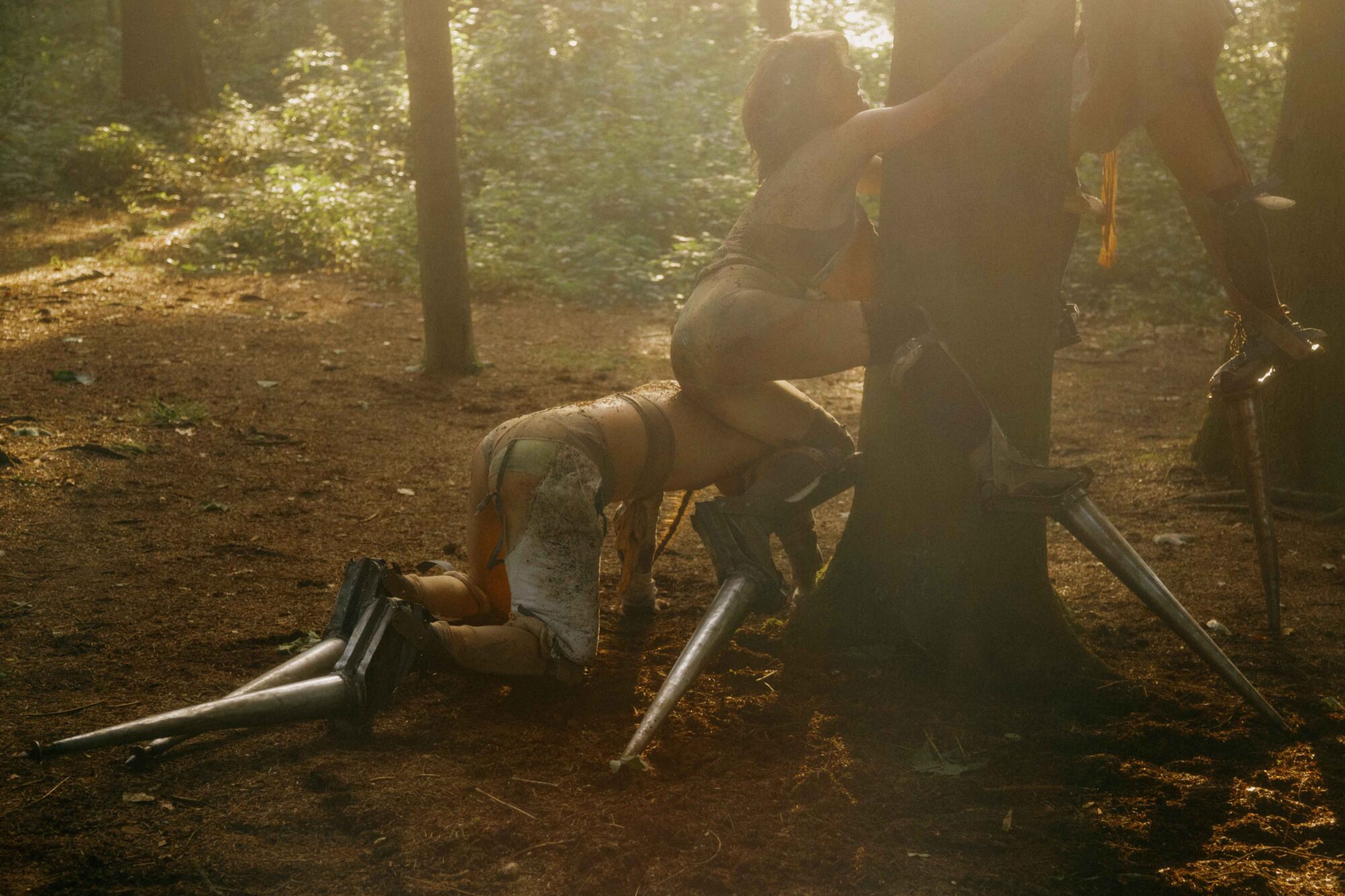 Planted in the ground, under loving trees, Embracet is a performance that seeks stability in the heights. At their feet: pointed and dangerous shoes. As in de-skilling, they create an impracticality that forces them to find new ways to move. Melt into each other, go through evolutions. And in the end, what does it take to move forward?
