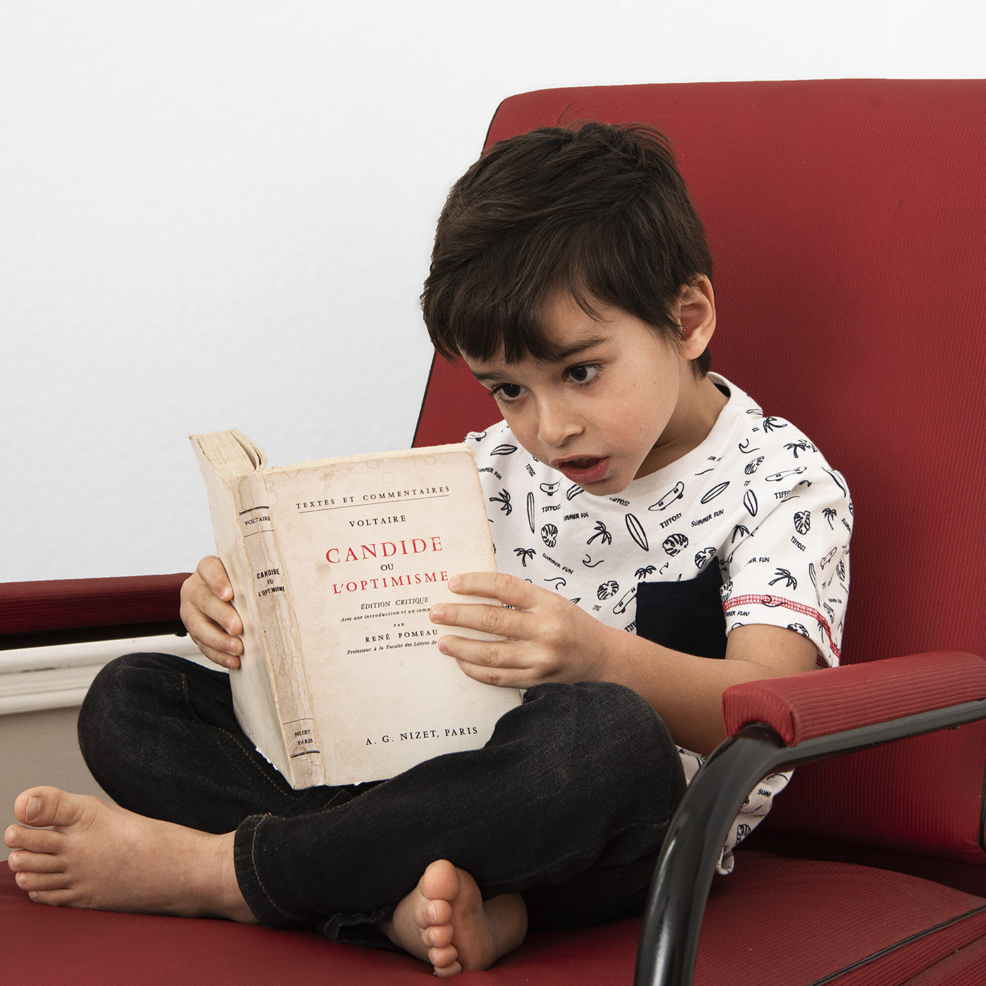 Nowadays, the practice of reading is in competition with various digital, social and cultural platforms, whose goal is to monopolize our attention. Reading has become more and more dematerialized and fragmented in both time and space. In his series of photographs entitled Lectures, Olivier Suter shows children absorbed in books that have marked human history, works that even when they first came out were interrogating our connection with the world and with others. Through his images Suter considers the influence that writers, thinkers and philosophers might have today on our society. Thanks to a collaboration with the Public Library, the photographic portraits are accompanied by audio content offering excerpts and a brief context of the books appearing in the images.