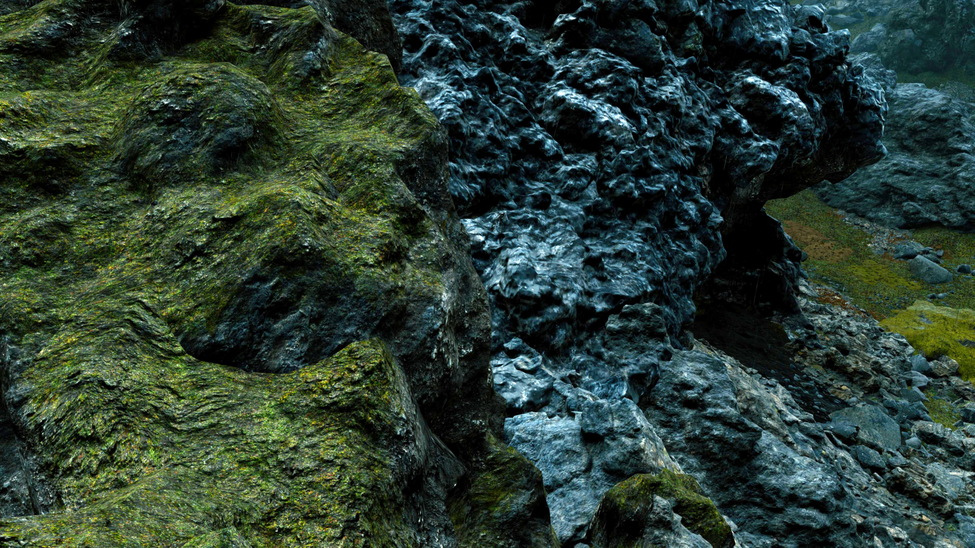 In March 2020, because of pandemic restrictions, Pascal Greco had to cancel a planned trip to Iceland to continue a photographic project. Confined to his own home, he began to make daily explorations of the digital landscapes in the Death Stranding game on his Playstation 4. During the hours he spent playing in this digital environment, he gradually realized that the virtual landscapes of the game bore an astonishing resemblance to the landscapes of Iceland that he had planned to photograph. He began to zoom in on the screen, studying the details of the constructed environments, and created shots within the game using its photo mode, both in close-ups and in wide shots.