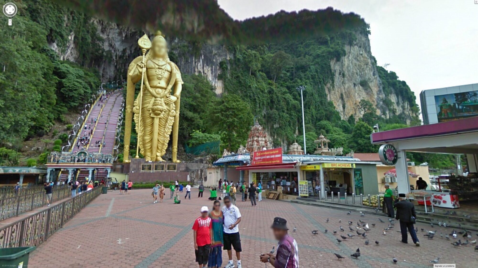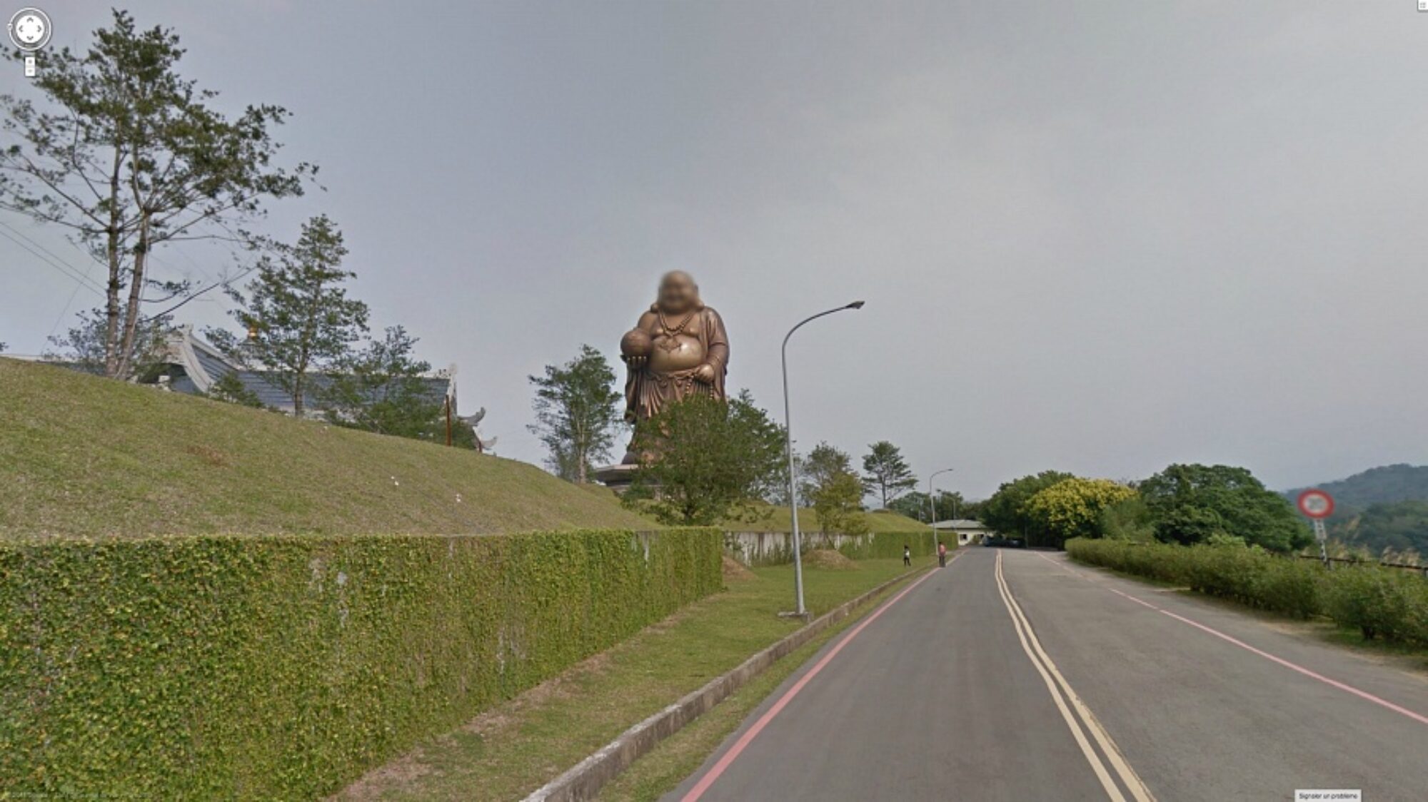 Dans le Las Vegas de Google Street View, le Sphinx a troqué son flamboyant masque de Touthankhamon contre le visage érodé de son modèle égyptien. « Si l’une de nos images contient un visage identifiable […], notre technologie floute automatiquement ces éléments pour empêcher toute identification de la personne. » Floutés par Google, tous les visages se valent. Ainsi ces grandes statues – religieuses ou commerciales – se dissimulent-elles de ceux qui les regardent, unilatéralement, depuis leur fauteuil.