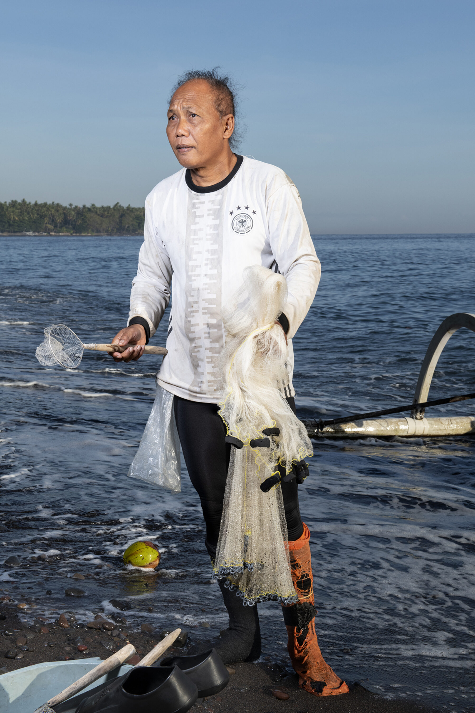 Pour son travail documentaire Big Fish, Laurence Kubski s’est plongée dans l’univers des poissons d’aquarium. Communément appelés poissons d’ornement et dénombrés à plus de trois millions en Suisse, la majorité des poissons d’eau de mer est capturée directement dans la nature. Après de nombreuses recherches sur ces univers marins créés artificiellement par l’être humain et mis en scène de manière complexe, l’artiste a retrouvé la trace de chaque acteur·ice du secteur : des magasins locaux aux grossistes les plus importants du monde en passant par les vétérinaires qui contrôlent les importations à la frontière, jusqu’à des pêcheurs en Indonésie, le plus grand pays exportateur au monde.