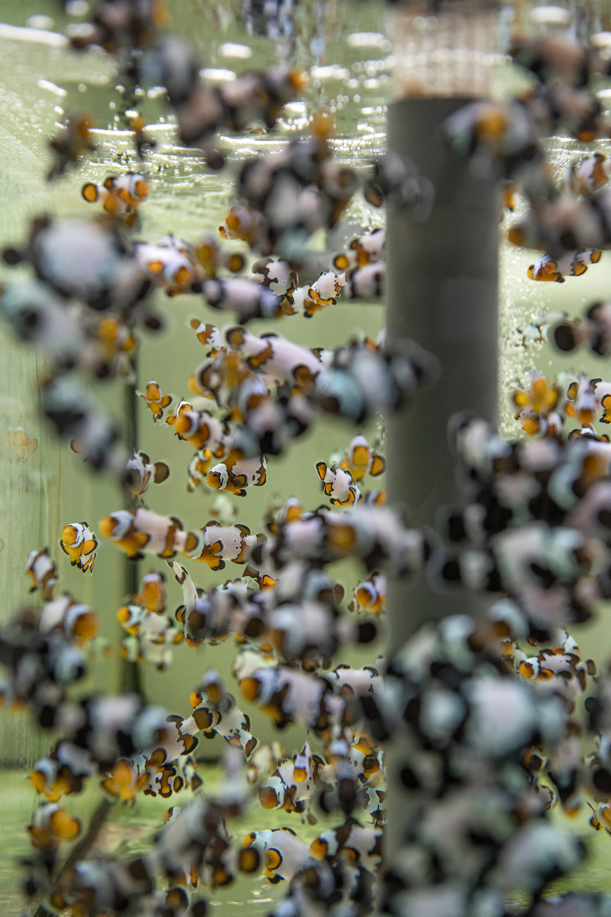 L’installation photographique qui résulte de ses recherches est composée d’images qui emmènent le public dans les coulisses de cette industrie complexe. Elle questionne le paradoxe intrinsèque de ces environnements marins reproduits en miniature et de manière sophistiquée au profit d’un plaisir esthétique. Bien qu’elle génère une source de revenus souvent importante pour les habitant·e·s des pays en développement et implique un certain savoir-faire, cette industrie autorise la manipulation d’êtres vivants et perturbe tout un écosystème. Un paradoxe dans lequel l’artiste nous immerge.