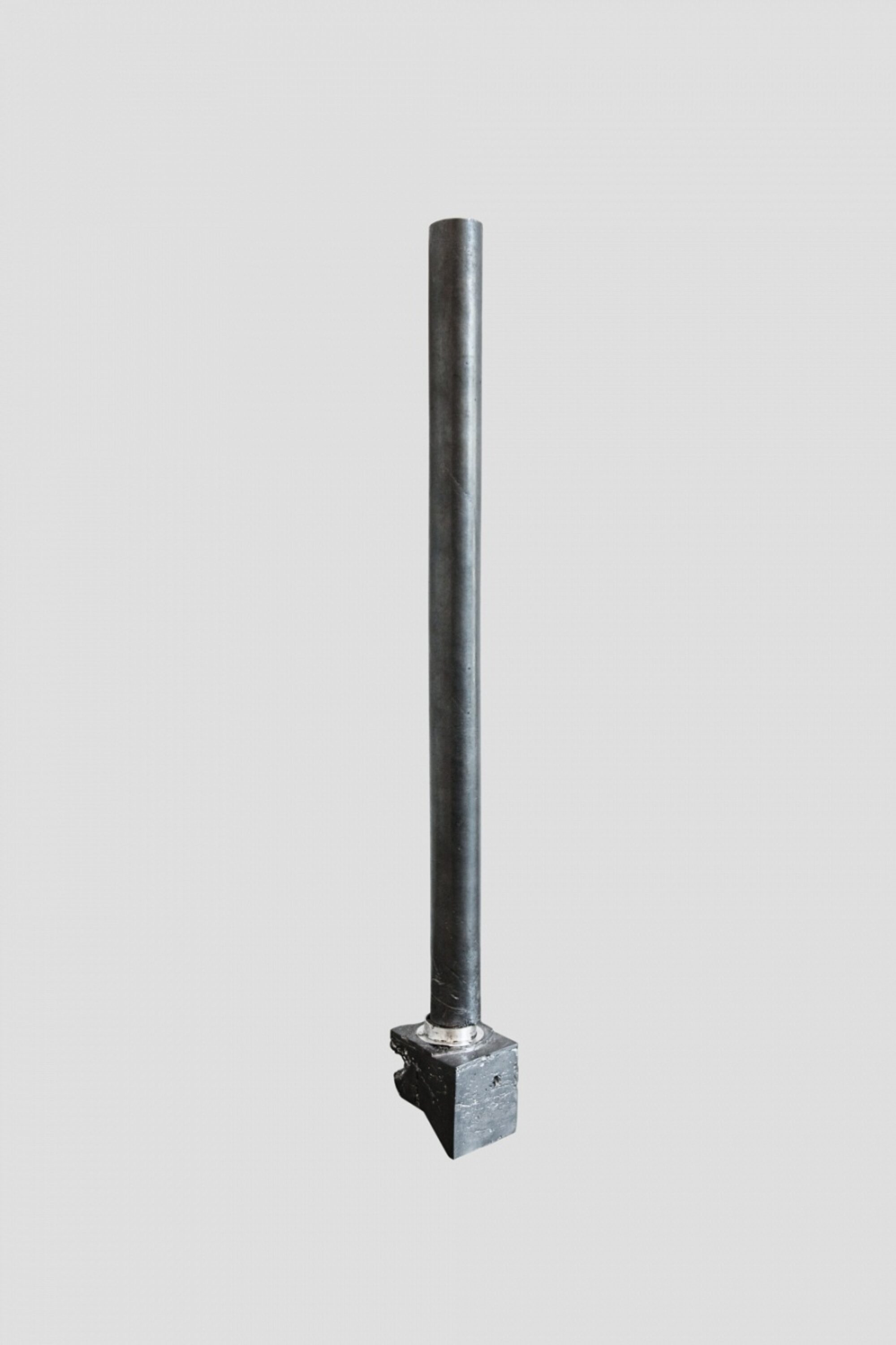 Dans cet ensemble intitulé « Candela », l’appareil photographique est utilisé comme un négatif, un moule. Il devient un contenant dans lequel du plomb en fusion est déversé. Les appareils, dont les optiques ont été retirées, sont surmontés d’un tube en carton placé verticalement. Le liquide incandescent une fois refroidi et durci donne forme aux aspérités et détails habituellement invisibles de la boîte noire. Semblables à des sceptres une fois extraits de l’appareil photographique, les contretypes révèlent et reproduisent le lieu de création de l’image.