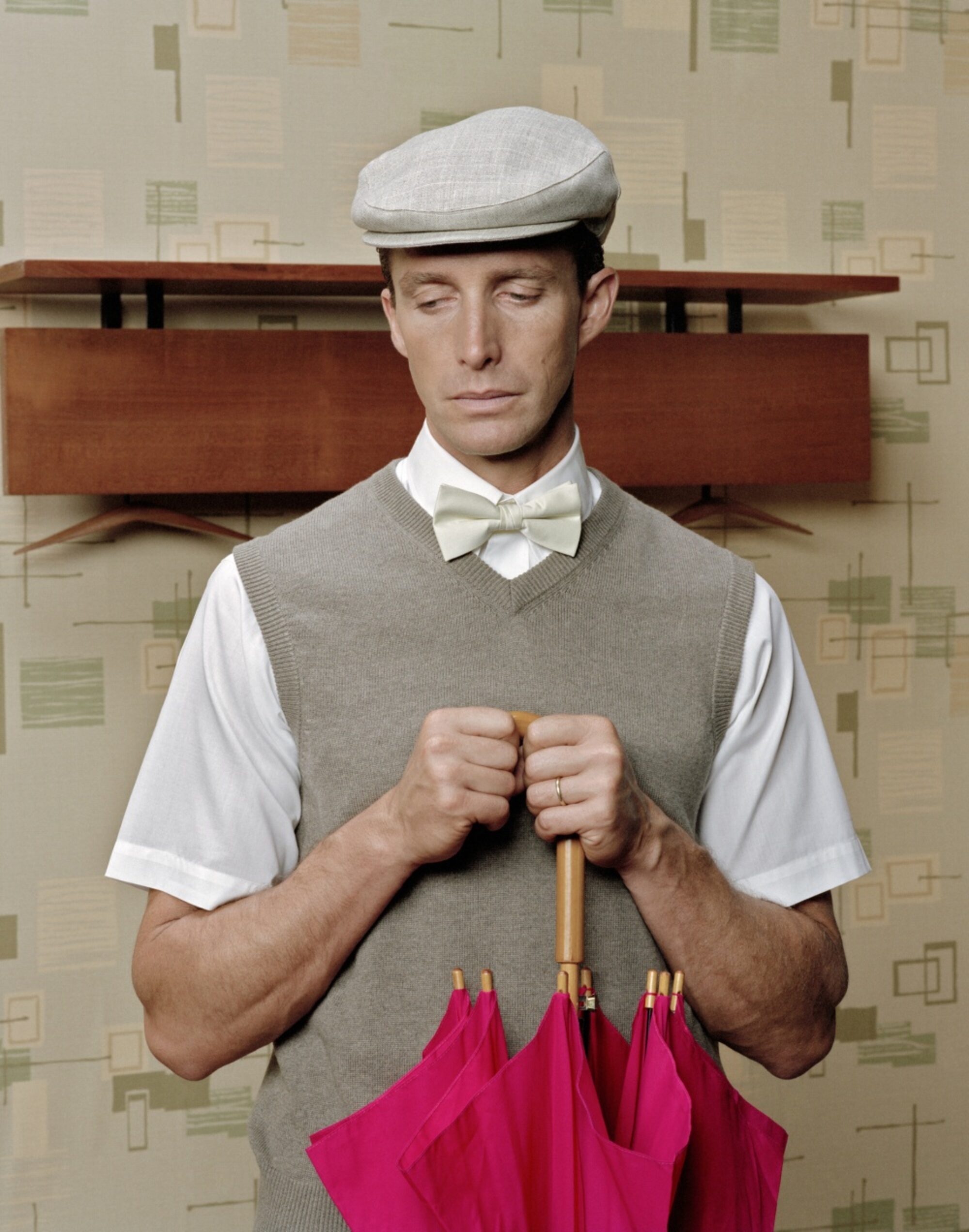 D’un style anglo-saxon du début des années 1950, la série se réfère à la peur de faire entrer une nouveauté chez soi. La pâleur est aussi une métaphore de l’esprit du temps, sans énergie, dans l’expectation, qu’on ne remarque pas mais qui disparaît modestement dans les coulisses. Un autre indice révèle que cette peur maladive devrait être guérie, ce sont les lèvres rouges. Elles ne parlent pas encore de manière ostensible, pourtant une communication intérieure est établie avec le corpus delicti.
