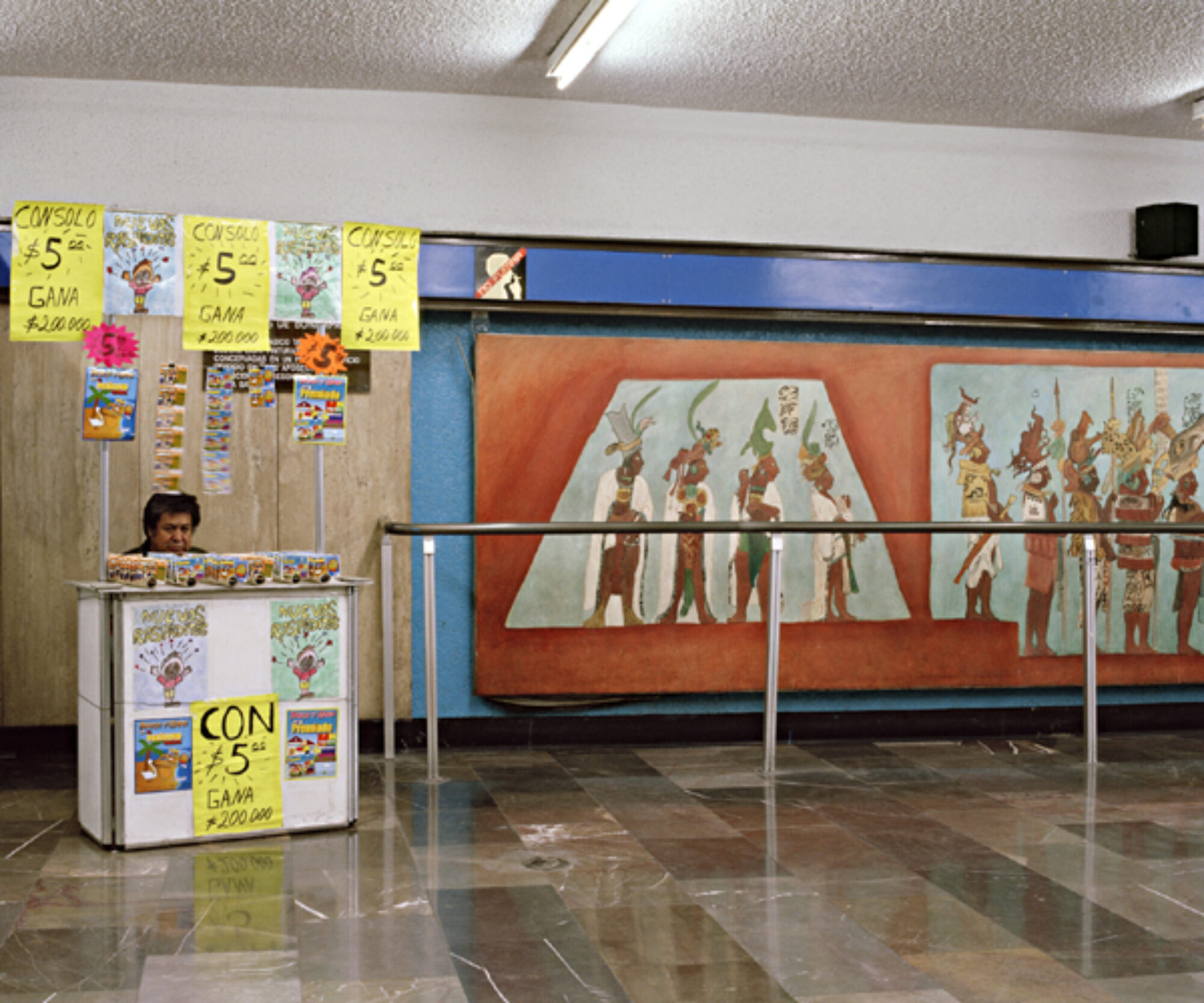 Durant son séjour au Mexique en 2008, Emmanuelle Bayart appréhende le pays comme un objet complexe, encore tiraillé entre ses origines indigènes et celles des conquistadors espagnols. Elle cherche à mieux comprendre le caractère du Mexicain, sa culture, son histoire. La révélation s’impose à elle dans le métro de Mexico City, à la station Tacubaya, où se dresse une peinture murale représentant la culture précolombienne. Cette rencontre sous terre est le point de départ des séries “Dans le labyrinthe du métro, Mexico” et “Ode au métro de Mexico”.