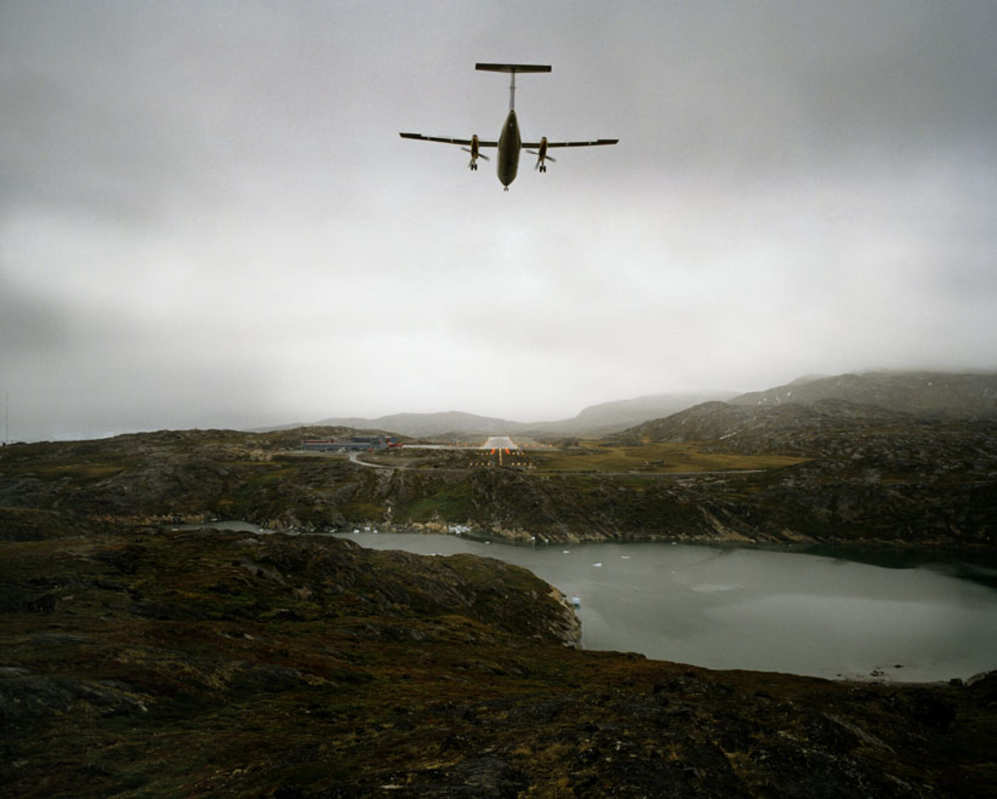 Dans sa série “Greenland, Climate tourism and displaced communities” (Groenland, tourisme climatique et communautés déplacées), Alban Kakulya nous montre à travers son objectif la situation actuelle du “pays vert”, énorme île glacée qui, depuis sa récente – mais néanmoins par- tielle – autonomie du Danemark, cherche à forger son identité et son avenir. Face aux paysages de glace d’une beauté tellement parfaite qu’ils nous rappellent des maquettes idéalisées, le photographe nous dévoile la réalité sociale du pays. Des bâtiments préfabriqués de différentes couleurs, où les autochtones se sont vus parqués à partir des années 1960, faute de moyens de la part de l’Etat pour soutenir ces communautés sur place, contrastent avec la pureté et l’aspect massif du contexte naturel. Sont également visibles les changements occasionnés dans le paysage par la croissance du tourisme et de l’exploitation des ressources naturelles comme le gaz et le pétrole qui pourraient devenir de nouvelles voies de développement économique.