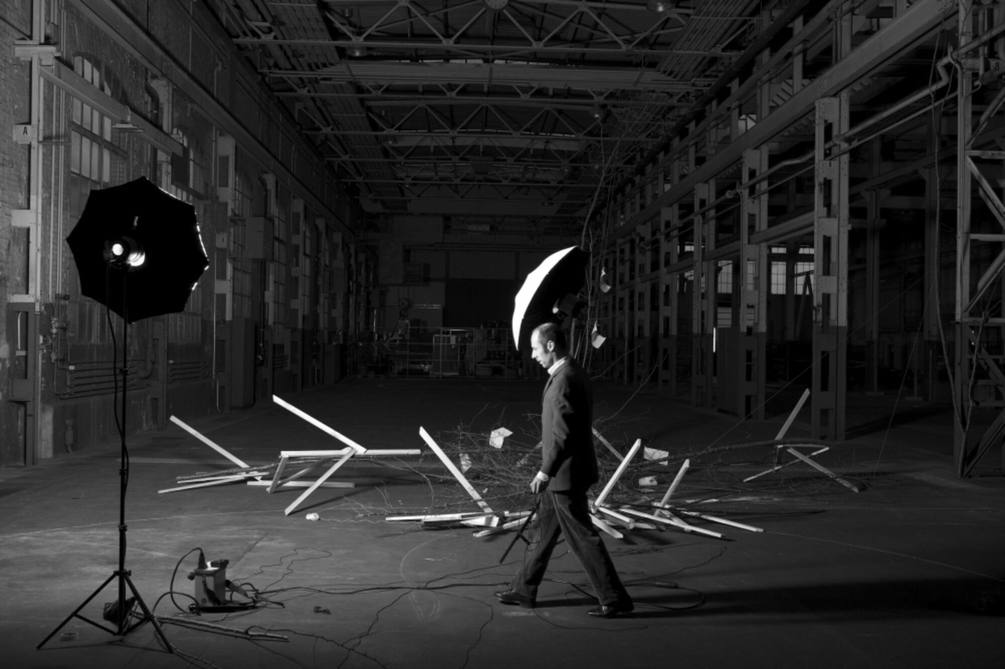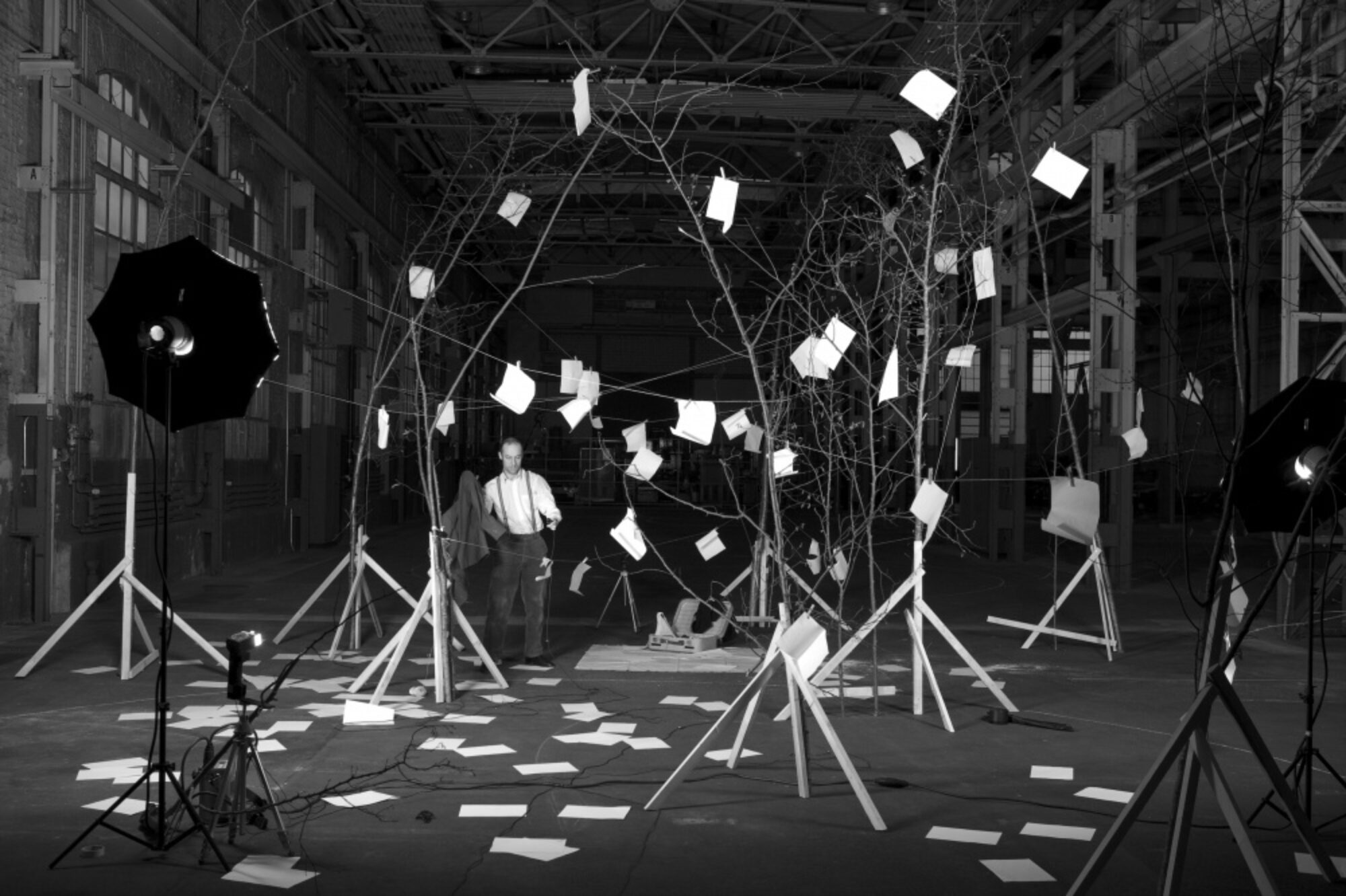 Récompensé par le Swiss Cups Arts Award (automne 2007) pour son ‘arbeitsdokumentation: die buchstaben, die worte, die blätter, die fragen (var. 4)’, Herbert Weber poursuit, toujours sur un ton ironique, ses recherches sur le rapport entre le documentaire et la mise en scène, à travers une oeuvre inédite, rythmée par des contrastes clairs/ obscurs et caractérisée par une grande netteté. À partir d’une photographie noir/ blanc d’un paysage de campagne, l’artiste crée une série d’images sous forme de fausse documentation, censée illustrer la mise en scène de l’oeuvre de départ. De cette série intitulée arbeitsdokumentation: interpretation von fakten (var. 2 und 3) découlent deux oeuvres finales, (var. 2 und 3). Jouant ainsi sur une double lecture – à partir de la photo de départ ou à partir des images finales – la mise en scène illustrée devient à la fois vrai et faux document. Les images se suivent, deviennent des séquences, racontent une histoire : celle du photographe simultanément auteur et modèle, construisant puis déconstruisant son décor.