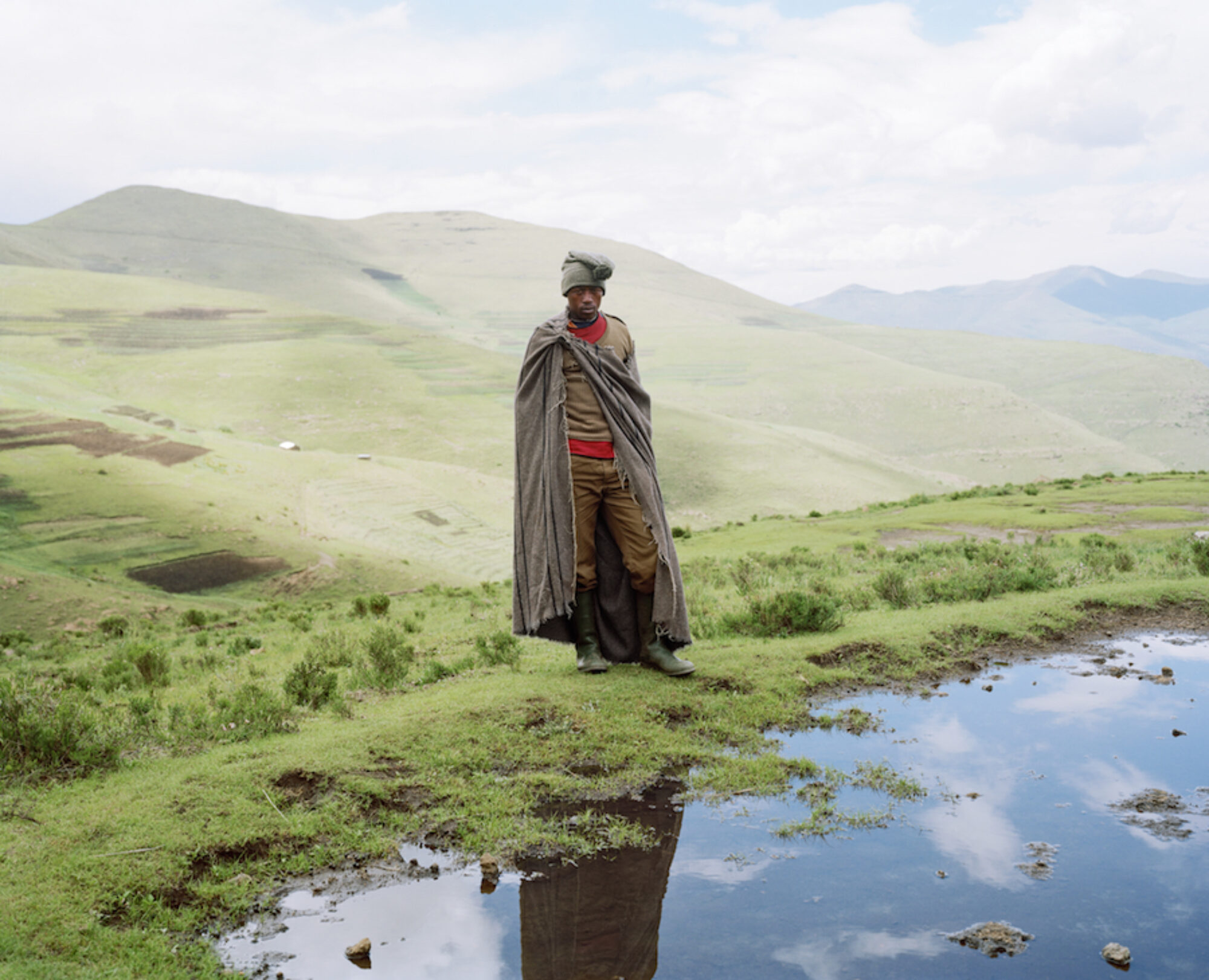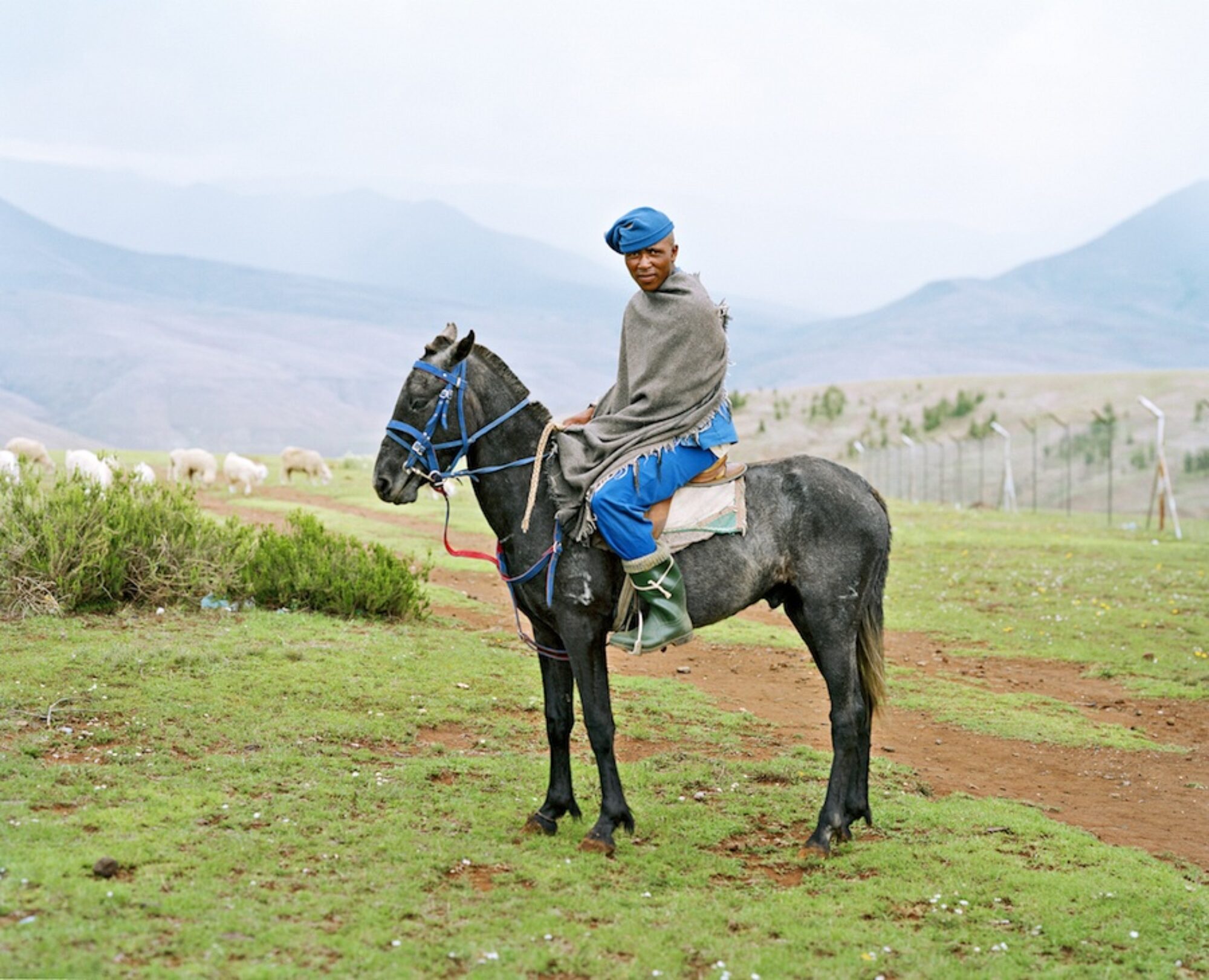Les portraits de l’étude « Kobo, Lesotho » de Joël Tettamanti se concentrent sur les couvertures (kobo) portées par les Basotho, peuple majoritaire du Lesotho (royaume indépendant enclavé en Afrique du Sud). Bien plus qu’une simple protection, ces couvertures sont offertes lors de rites d’initiation.