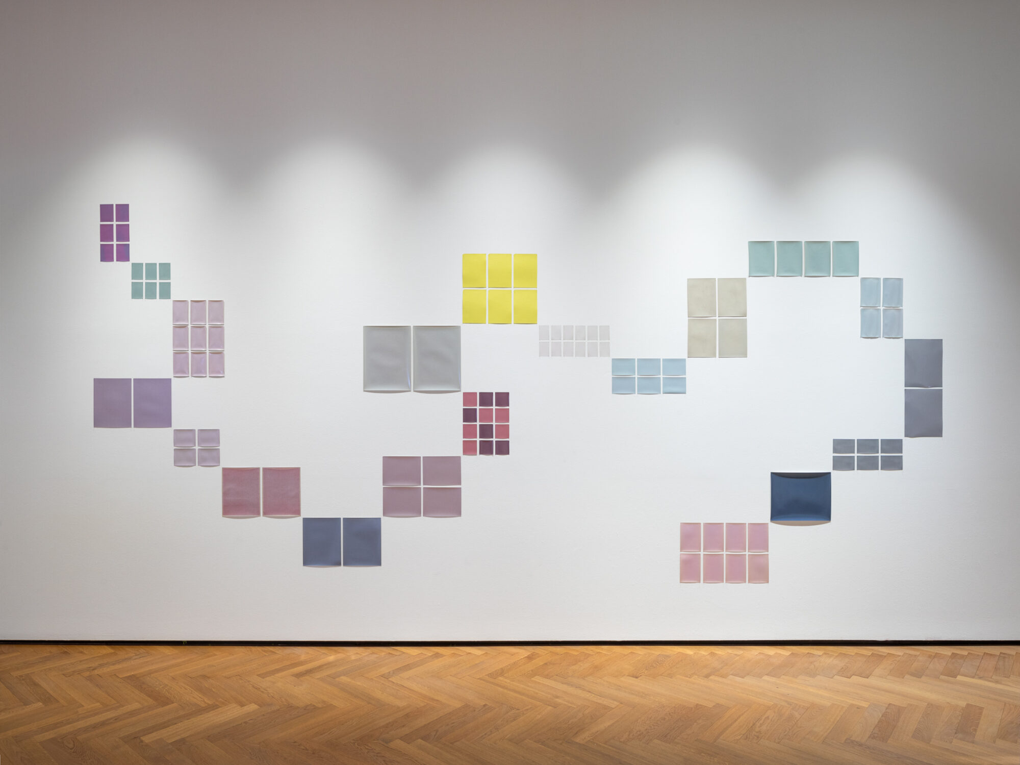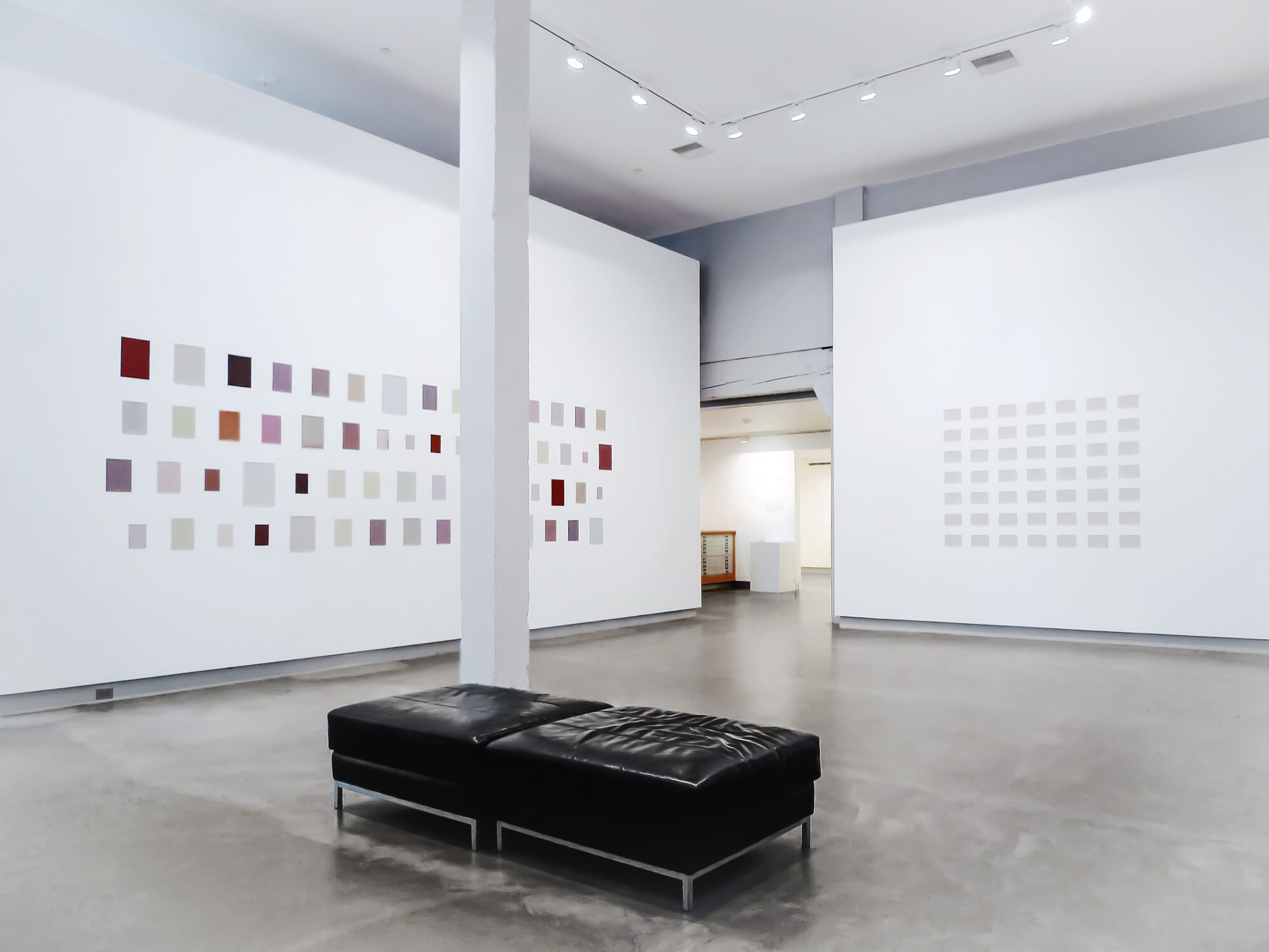 A l’ère de la prolifération de contenus photographiques synthétiques et spectaculaires, le duo d’artistes continue à mettre au centre de sa pratique les éléments fondamentaux de la photographie analogique : la lumière et le matériel photosensible. L’installation in situ a été réalisée à partir de papiers photographiques argentiques historiques vierges, qui datent des années 1880 à 1990. Les feuilles de papiers ont été alignées sur les murs de la salle d’exposition selon un dispositif précis. Une réaction chimique des sels d’argent se produit dès que les papiers argentiques sont exposés à la lumière ambiante de l’exposition : les surfaces blanches se densifient peu à peu en variations de couleurs monochromes, selon chaque formule particulière des producteurs.