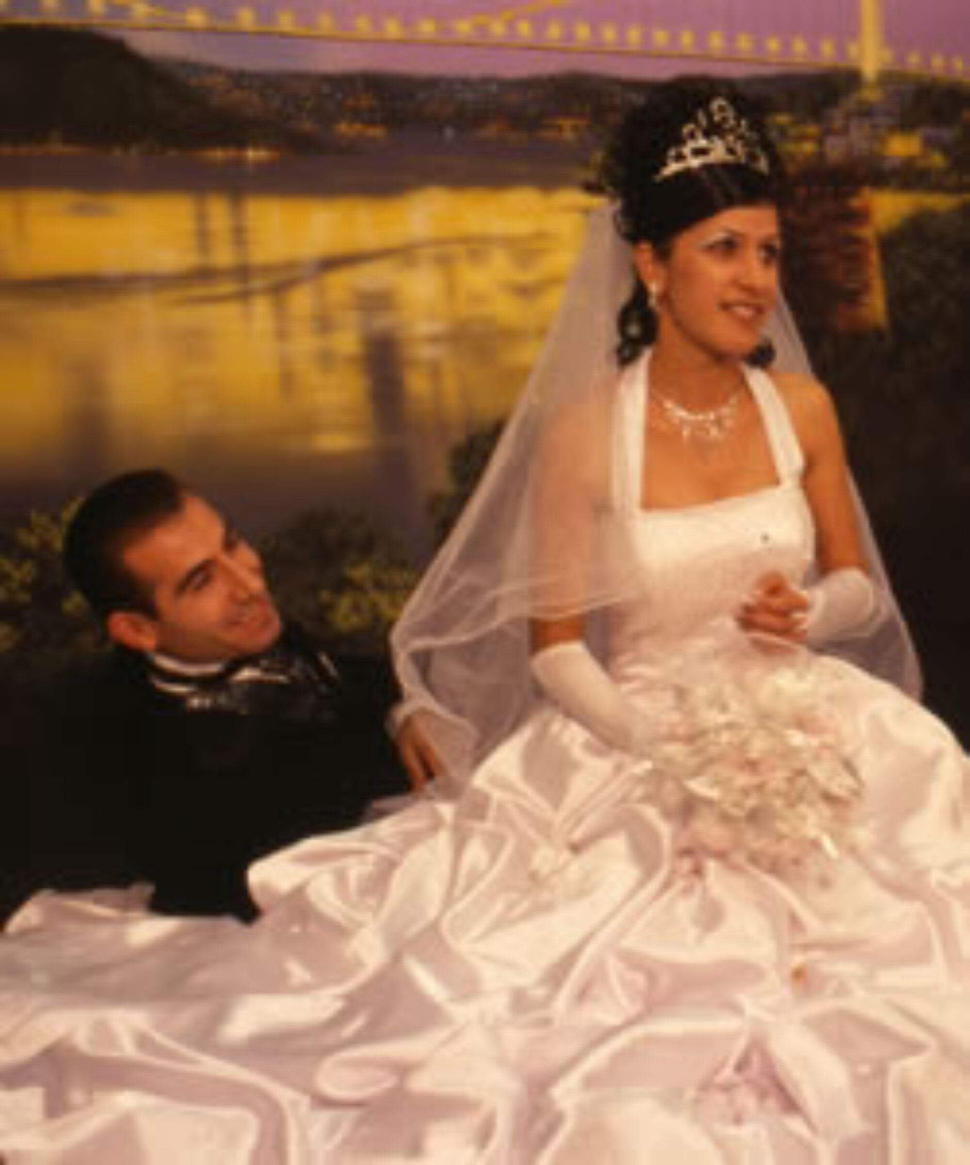 En flânant dans le Petit-Bâle, devant les vitrines des photographes turcs, j’ai découvert des photographies qui m’ont paru différentes : elles témoignaient d’une manière colorée de fêtes que nous connaissons mais que nous célébrons autrement. A côté de portraits d’anniversaires et de représentations de couchers de soleil, les photographies de mariage ont attiré mon attention par leur composition et leur témoignage.