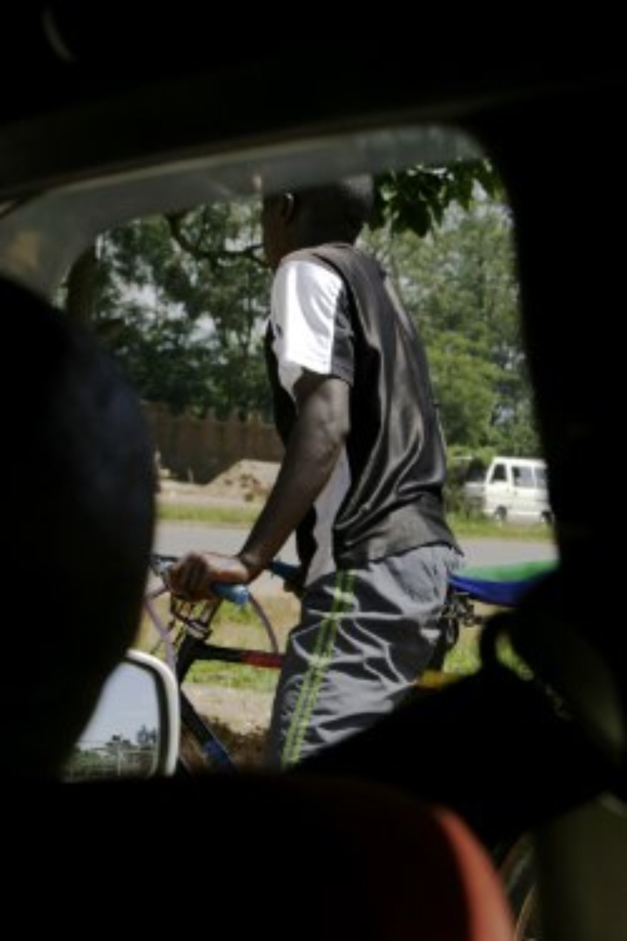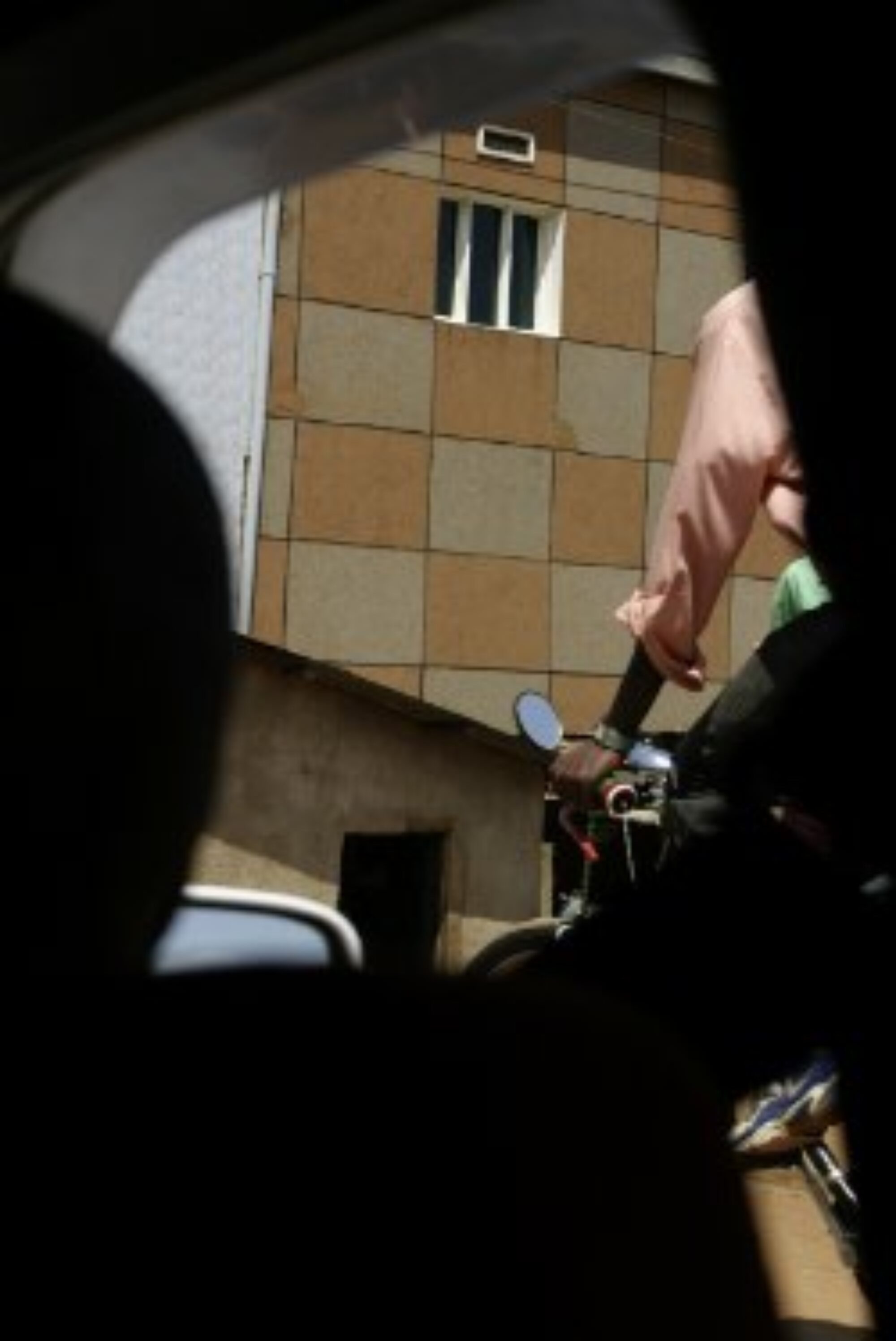 Jean-Luc Cramatte s’intéresse avant tout à l’infini détail (en cela il rejoint le travail d’inventaire de «Policliniques Series») et sa vision de l’Afrique est forcément un peu décalée. Le photographe s’interroge: comment aborder l’Afrique? Jean-Luc Cramatte observe les ambiguïtés du paysage ainsi que des regards de ces hommes qui passent devant la fenêtre de son taxi. Dans un premier temps, le thème de l’Afrique apparaît comme secondaire. Il pourrait tout aussi bien s’agir d’un projet sur le design, le graphisme ou l’architecture (un mur entraperçu par la fenêtre du taxi devient un monument).