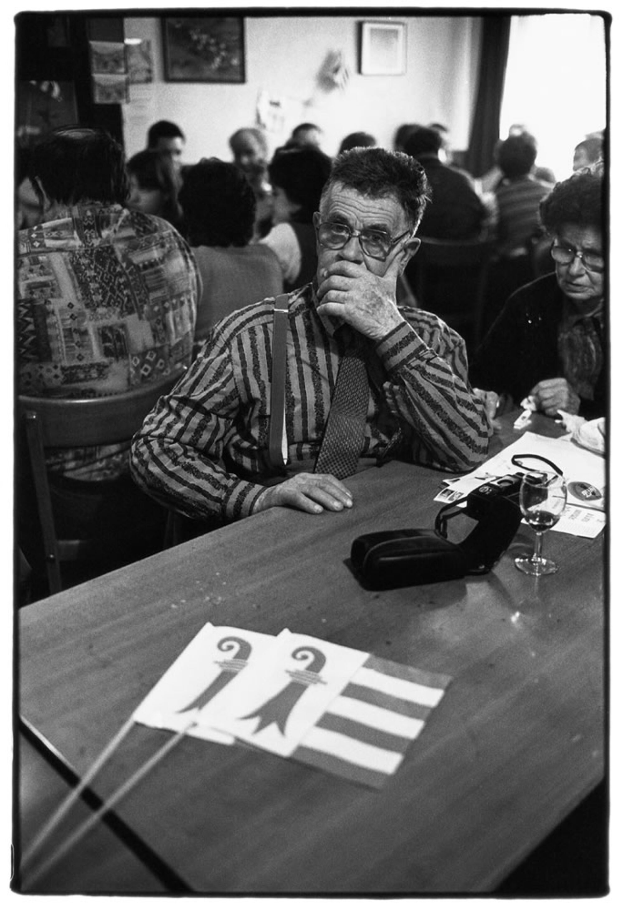Depuis plus de trente ans, Heini Stucki travaille dans la lignée de la tradition de la “ photographie du quotidien “. Il se consacre aux hommes et aux paysages, comme par exemple, ceux du Seeland bernois qu’il parcourt muni de son Leica à la recherche de ses sujets. Que Heini Stucki portraiture des chats, des personnes en chaise roulante, les motards bernois “ Broncos “, des sans-papiers ou encore l’écrivain Gerhard Meier, ses images sont toujours très élaborées et fortement engagées : elles traitent au fond des exclus, des menacés ou des faibles. La plupart du temps, Heini Stucki photographie encore en noir et blanc et il suspend lui-même ses tirages sur la corde à linge de sa chambre noire. Photographier est pour lui une façon de dialoguer avec des inconnus. Malgré la mélancolie qui émerge régulièrement de ses travaux, il aime relever les aspects cocasses du quotidien. (Christian Fürholz)