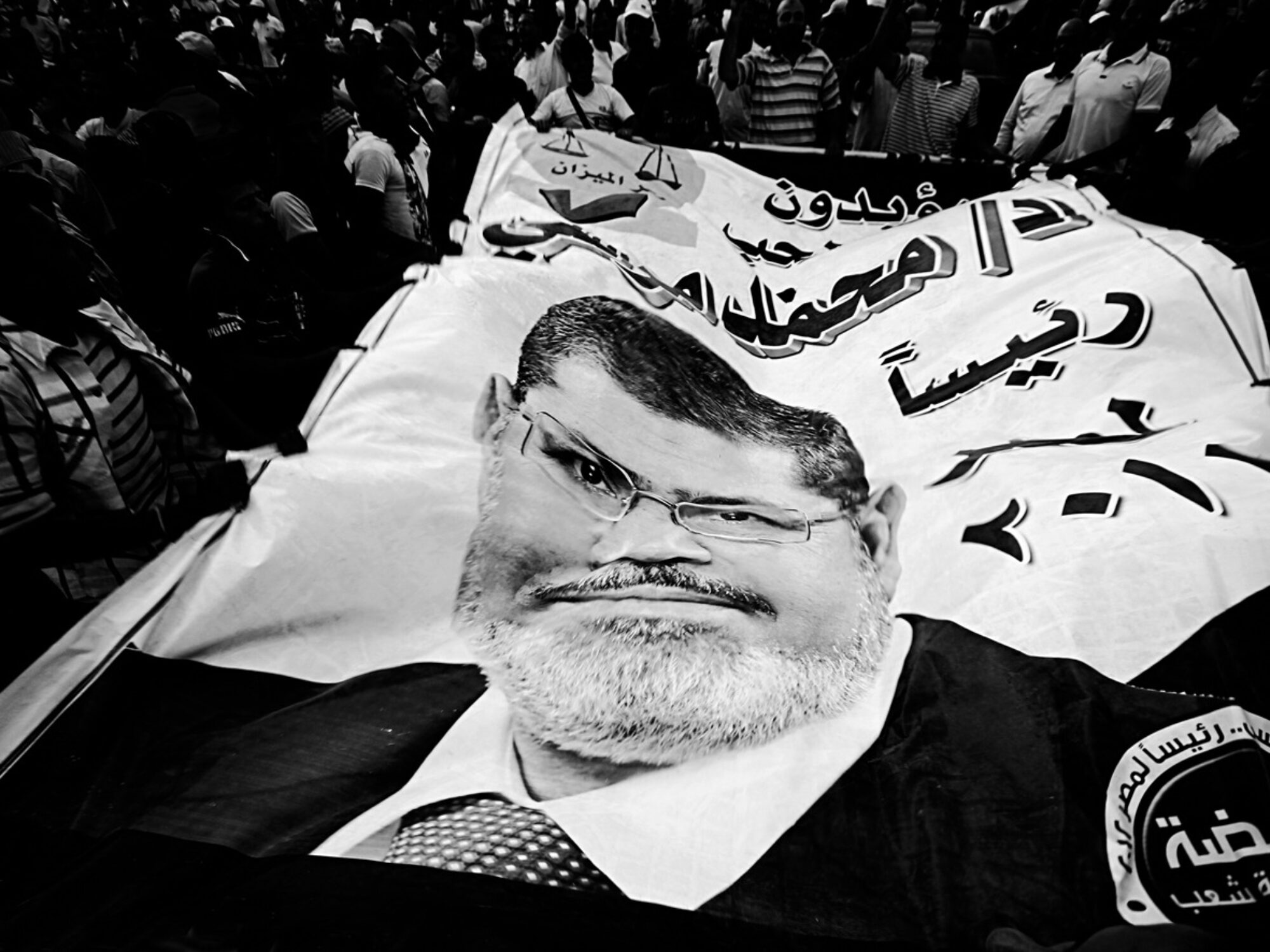 Place Tahrir, 24 juin 2012. L’Egypte chante les résultats des premières élections démocratiques de son histoire. Les banderoles à l’effigie du candidat élu Mohamed Morsi recouvrent la place de la capitale égyptienne. Mais les différentes pressions exercées par les supporters sur l’une d’entre elles déforment le visage du président : la figure, sans intention aucune de la part des partisans, devient alors disproportionnée, faussée et changeante. Et Mohamed Morsi, l’homme aux multiples visages.