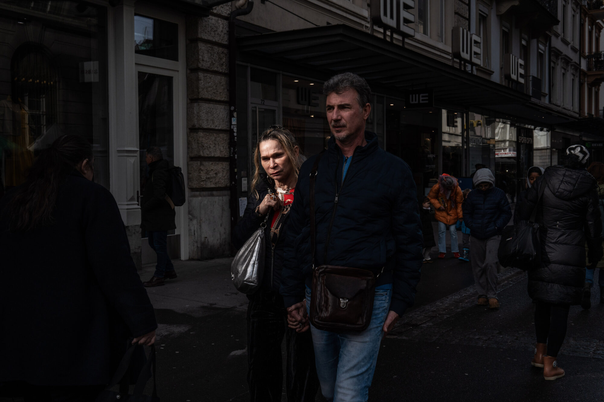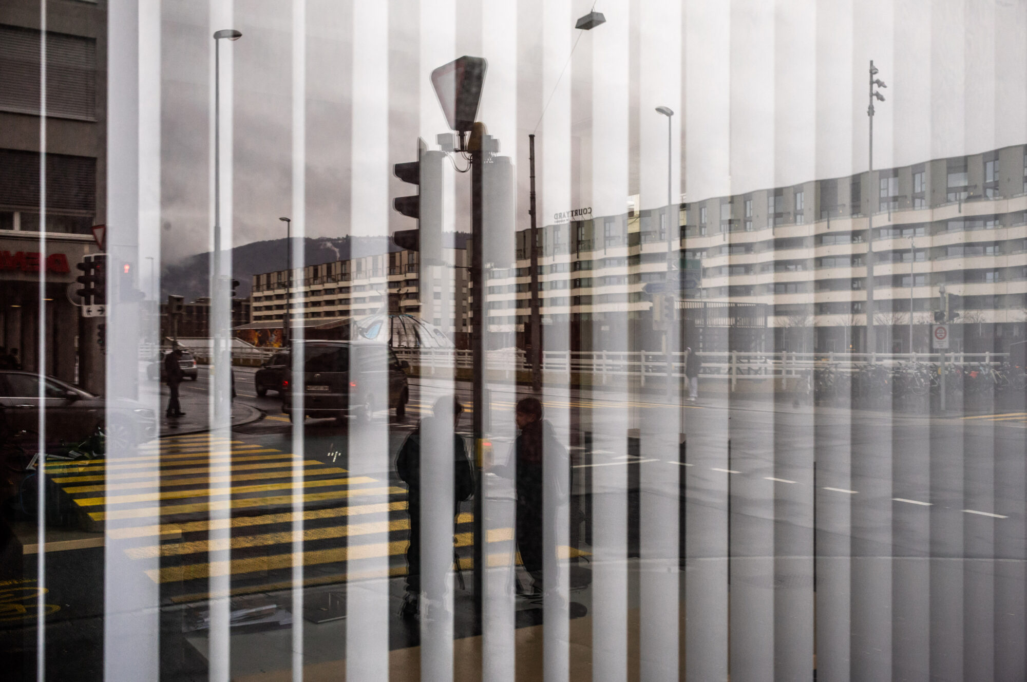 Le projet de Dominic Nahr naît d’une immersion attentive dans cet espace urbain. Marcher sans assignation, observer sans intention de démonstration, rester présent à ce qui se donne : passages, lumières, gestes ordinaires, moments d’attente, de retour, de continuité. La ville apparaît comme une succession de situations où se déploient des existences à la fois publiques et intimes. Il ne s’agit pas ici de définir Biel/Bienne, mais d’en éprouver la présence.